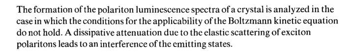 The formation of the polariton luminescence spectra of a crystal is analyzed in the case in which the conditions for the applicability of the Boltzmann kinetic equation do not hold. A dissipative attenuation due to the elastic scattering of exciton polaritons leads to an interference of the emitting states.