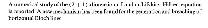 A numerical study of the (2 + 1) -dimensional Landau-Lifshitz-Hilbert equation is reported. A new mechanism has been found for the generation and breaching of horizontal Bloch lines.