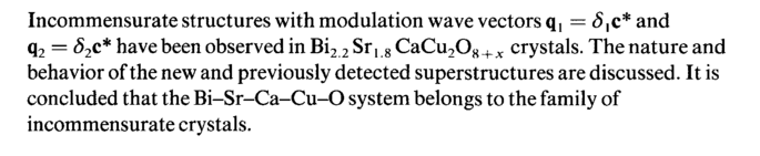 Incommensurate structures with modulation wave vectors q! = <5,c* and q2 = <52c* have been observed in Bi2 2Sr18CaCu208+x crystals. The nature and behavior of the new and previously detected superstructures are discussed. It is concluded that the Bi-Sr-Ca-Cu-O system belongs to the family of incommensurate crystals.