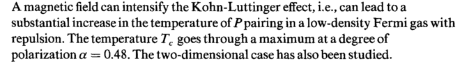A magnetic field can intensify the Kohn-Luttinger effect, i.e., can lead to a substantial increase in the temperature of Ρ pairing in a low-density Fermi gas with repulsion. The temperature Tc goes through a maximum at a degree of polarization a = 0.48. The two-dimensional case has also been studied.