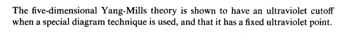 The five-dimensional Yang-Mills theory is shown to have an ultraviolet cutoif when a special diagram technique is used, and that it has a fixed ultraviolet point.