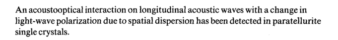 An acoustooptical interaction on longitudinal acoustic waves with a change in light-wave polarization due to spatial dispersion has been detected in paratellurite single crystals.