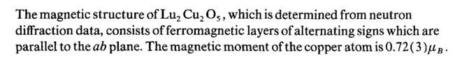 The magnetic structure of Lu2 Cu2 Os, which is determined from neutron diffraction data, consists of ferromagnetic layers of alternating signs which are parallel to the ab plane. The magnetic moment of the copper atom is 0.72 (3 )μг