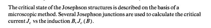 The critical state of the Josephson structures is described on the basis of a microscopic method. Several Josephson junctions are used to calculate the critical current Jc vs the induction B,JC(B).