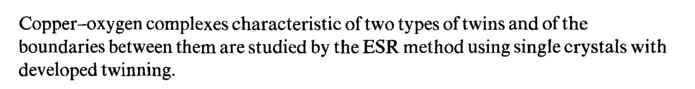 Copper-oxygen complexes characteristic of two types of twins and of the boundaries between them are studied by the ESR method using single crystals with developed twinning.