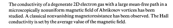 The conductivity of a degenerate 2D electron gas with a large mean-free path in a microscopically nonuniform magnetic field of Abrikosov vortices has been studied. A classical nonvanishing magnetoresistance has been observed. The Hall conductivity is set by the average value of the magnetic field.