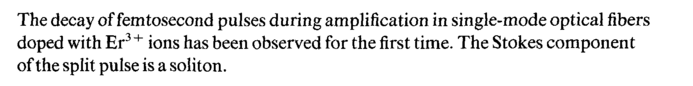 The decay of femtosecond pulses during amplification in single-mode optical fibers doped with Er3+ ions has been observed for the first time. The Stokes component of the split pulse is a soliton.