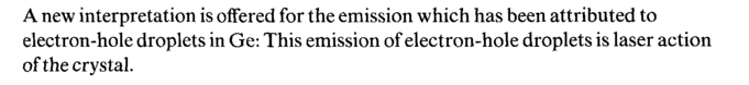 A new interpretation is offered for the emission which has been attributed to electron-hole droplets in Ge: This emission of electron-hole droplets is laser action of the crystal.