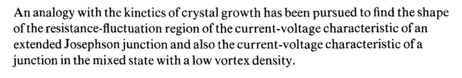 An analogy with the kinetics of crystal growth has been pursued to find the shape of the resistance-fluctuation region of the current-voltage characteristic of an extended Josephson junction and also the current-voltage characteristic of a junction in the mixed state with a low vortex density.