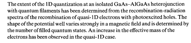 The extent of the ID quantization at an isolated GaAs-AlGaAs heterojunction with quantum filaments has been determined from the recombination-radiation spectra of the recombination of quasi-ID electrons with photoexcited holes. The shape of the potential well varies strongly in a magnetic field and is determined by the number of filled quantum states. An increase in the effective mass of the electrons has been observed in the quasi-ID case.