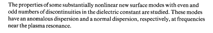 The properties of some substantially nonlinear new surface modes with even and odd numbers of discontinuities in the dielectric constant are studied. These modes have an anomalous dispersion and a normal dispersion, respectively, at frequencies near the plasma resonance.
