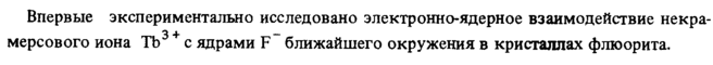 Впервые экспериментально исследовано электронно-ядерное взаимодействие некра3 + — мерсового иона ТЬ с ядрами F ближайшего окружения в кристаллах флюорита.
