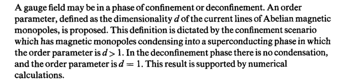 A gauge field may be in a phase of confinement or deconfinement. An order parameter, defined as the dimensionality d of the current lines of Abelian magnetic monopoles, is proposed. This definition is dictated by the confinement scenario which has magnetic monopoles condensing into a superconducting phase in which the order parameter is d > 1. In the deconfinement phase there is no condensation, and the order parameter is d — 1. This result is supported by numerical calculations.