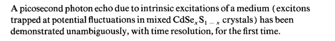 A picosecond photon echo due to intrinsic excitations of a medium (excitons trapped at potential fluctuations in mixed CdSeS { _ x crystals) has been demonstrated unambiguously, with time resolution, for the first time.