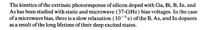 The kinetics of the extrinsic photoresponse of silicon doped with Ga, Bi, B, In, and As has been studied with static and microwave (37-GHz) bias voltages. In the case of a microwave bias, there is a slow relaxation (10 ~5 s) of the B, As, and In dopants as a result of the long lifetime of their deep excited states.