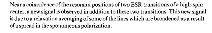 Near a coincidence of the resonant positions of two ESR transitions of a high-spin center, a new signal is observed in addition to these two transitions. This new signal is due to a relaxation averaging of some of the lines which are broadened as a result of a spread in the spontaneous polarization.