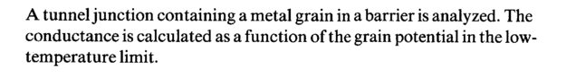 A tunnel junction containing a metal grain in a barrier is analyzed. The conductance is calculated as a function of the grain potential in the low-temperature limit.