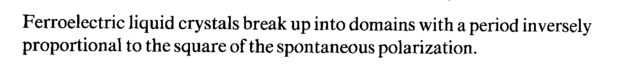 Ferroelectric liquid crystals break up into domains with a period inversely proportional to the square of the spontaneous polarization.