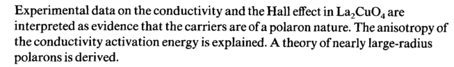 Experimental data on the conductivity and the Hall effect in La2Cu04 are interpreted as evidence that the carriers are of a polaron nature. The anisotropy of the conductivity activation energy is explained. A theory of nearly large-radius polarons is derived.