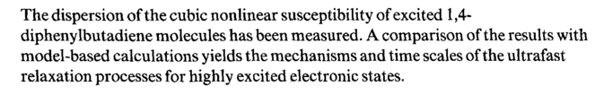 The dispersion of the cubic nonlinear susceptibility of excited 1,4-diphenylbutadiene molecules has been measured. A comparison of the results with model-based calculations yields the mechanisms and time scales of the ultrafast relaxation processes for highly excited electronic states.