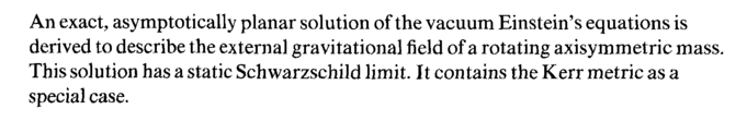 An exact, asymptotically planar solution of the vacuum Einstein's equations is derived to describe the external gravitational field of a rotating axisymmetric mass. This solution has a static Schwarzschild limit. It contains the Kerr metric as a special case.