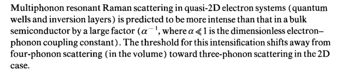 Multiphonon resonant Raman scattering in quasi-2D electron systems (quantum wells and inversion layers) is predicted to be more intense than that in a bulk semiconductor by a large factor (a~\ where a < 1 is the dimensionless electron-phonon coupling constant). The threshold for this intensification shifts away from four-phonon scattering (in the volume) toward three-phonon scattering in the 2D case.