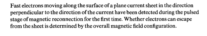 Fast electrons moving along the surface of a plane current sheet in the direction perpendicular to the direction of the current have been detected during the pulsed stage of magnetic reconnection for the first time. Whether electrons can escape from the sheet is determined by the overall magnetic field configuration.