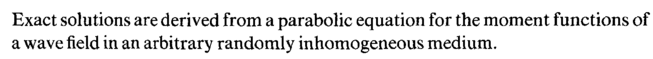 Exact solutions are derived from a parabolic equation for the moment functions of a wave field in an arbitrary randomly inhomogeneous medium.