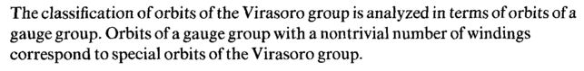 The classification of orbits of the Virasoro group is analyzed in terms of orbits of a gauge group. Orbits of a gauge group with a nontrivial number of windings correspond to special orbits of the Virasoro group.