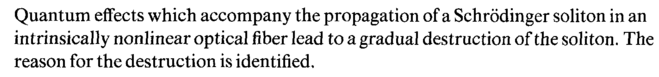 Quantum effects which accompany the propagation of a Schrodinger soliton in an intrinsically nonlinear optical fiber lead to a gradual destruction of the soliton. The reason for the destruction is identified.