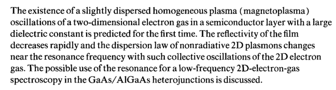 The existence of a slightly dispersed homogeneous plasma (magnetoplasma) oscillations of a two-dimensional electron gas in a semiconductor layer with a large dielectric constant is predicted for the first time. The reflectivity of the film decreases rapidly and the dispersion law of nonradiative 2D plasmons changes near the resonance frequency with such collective oscillations of the 2D electron gas. The possible use of the resonance for a low-frequency 2D-electron-gas spectroscopy in the GaAs/AlGaAs heterojunctions is discussed.