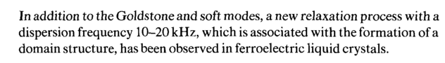 In addition to the Goldstone and soft modes, a new relaxation process with a dispersion frequency 10-20 kHz, which is associated with the formation of a domain structure, has been observed in ferroelectric liquid crystals.