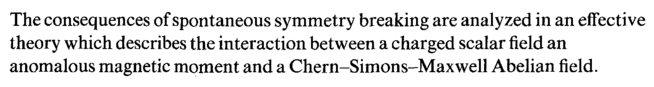 The consequences of spontaneous symmetry breaking are analyzed in an effective theory which describes the interaction between a charged scalar field an anomalous magnetic moment and a Chern-Simons-Maxwell Abelian field.