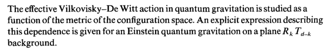 The effective Vilkovisky-De Witt action in quantum gravitation is studied as a function of the metric of the configuration space. An explicit expression describing this dependence is given for an Einstein quantum gravitation on a plane R k Td_k background.
