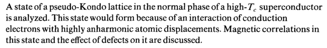 A state of a pseudoKondo lattice in the normal phase of a highTc superconductor is analyzed. This state would form because of an interaction of conduction electrons with highly anharmonic atomic displacements. Magnetic correlations in this state and the effect of defects on it are discussed.