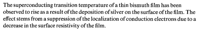 The superconducting transition temperature of a thin bismuth film has been observed to rise as a result of the deposition of silver on the surface of the film. The effect stems from a suppression of the localization of conduction electrons due to a decrease in the surface resistivity of the film.
