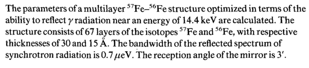 The parameters of a multilayer 57Fe-56Fe structure optimized in terms of the ability to reflect γ radiation near an energy of 14.4 keV are calculated. The structure consists of 67 layers of the isotopes 57Fe and 56Fe, with respective о _ thicknesses of 30 and 15 A. The bandwidth of the reflected spectrum of synchrotron radiation is 0.7 //eV. The reception angle of the mirror is 3'.