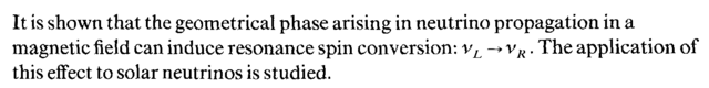 It is shown that the geometrical phase arising in neutrino propagation in a magnetic field can induce resonance spin conversion: vL -* vR. The application of this effect to solar neutrinos is studied.