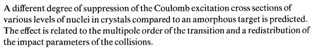 A different degree of suppression of the Coulomb excitation cross sections of various levels of nuclei in crystals compared to an amorphous target is predicted. The effect is related to the multipole order of the transition and a redistribution of the impact parameters of the collisions.