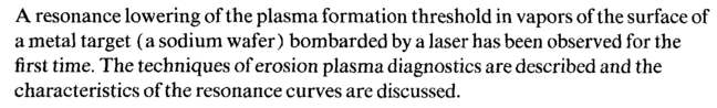 A resonance lowering of the plasma formation threshold in vapors of the surface of a metal target (a sodium wafer) bombarded by a laser has been observed for the first time. The techniques of erosion plasma diagnostics are described and the characteristics of the resonance curves are discussed.
