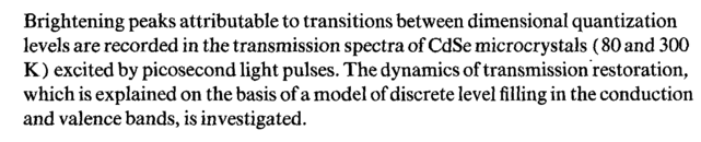 Brightening peaks attributable to transitions between dimensional quantization levels are recorded in the transmission spectra of CdSe microcrystals (80 and 300 K) excited by picosecond light pulses. The dynamics of transmission restoration, which is explained on the basis of a model of discrete level filling in the conduction and valence bands, is investigated.