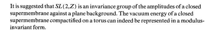 It is suggested that SL (2,Z) is an in variance group of the amplitudes of a closed supermembrane against a plane background. The vacuum energy of a closed supermembrane compactified on a torus can indeed be represented in a modulus-invariant form.