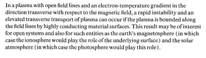 In a plasma with open field lines and an electron-temperature gradient in the direction transverse with respect to the magnetic field, a rapid instability and an elevated transverse transport of plasma can occur if the plasma is bounded along the field lines by highly conducting material surfaces. This result may be of interest for open systems and also for such entities as the earth's magnetosphere (in which case the ionosphere would play the role of the underlying surface) and the solar atmosphere (in which case the photosphere would play this role).
