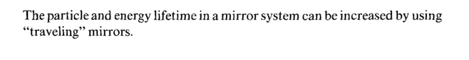 The particle and energy lifetime in a mirror system can be increased by using "traveling" mirrors.