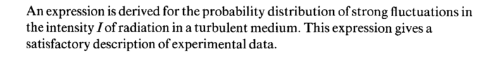 An expression is derived for the probability distribution of strong fluctuations in the intensity I of radiation in a turbulent medium. This expression gives a satisfactory description of experimental data.