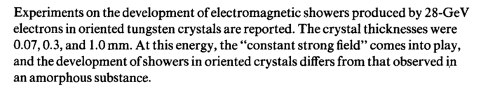 Experiments on the development of electromagnetic showers produced by 28-GeV electrons in oriented tungsten crystals are reported. The crystal thicknesses were 0.07,0.3, and 1.0 mm. At this energy, the "constant strong field" comes into play, and the development of showers in oriented crystals differs from that observed in an amorphous substance.