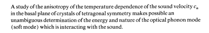 A study of the anisotropy of the temperature dependence of the sound velocity cn in the basal plane of crystals of tetragonal symmetry makes possible an unambiguous determination of the energy and nature of the optical phonon mode (soft mode) which is interacting with the sound.