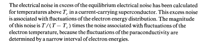 The electrical noise in excess of the equilibrium electrical noise has been calculated for temperatures above Tc in a current-carrying superconductor. This excess noise is associated with fluctuations of the electron energy distribution. The magnitude of this noise is T/{ Τ — Tc) times the noise associated with fluctuations of the electron temperature, because the fluctuations of the paraconductivity are determined by a narrow interval of electron energies.