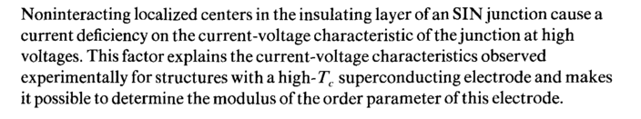 Noninteracting localized centers in the insulating layer of an SIN junction cause a current deficiency on the current-voltage characteristic of the junction at high voltages. This factor explains the current-voltage characteristics observed experimentally for structures with a high-Fc. superconducting electrode and makes it possible to determine the modulus of the order parameter of this electrode.