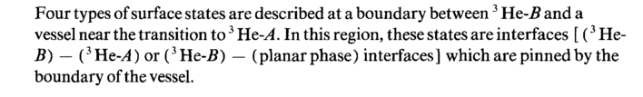 Four types of surface states are described at a boundary between3 He-B and a vessel near the transition to3 He-A. In this region, these states are interfaces [ (3 He-B) — (3Не-Л) or (3He-5) — (planarphase) interfaces] which are pinned by the boundary of the vessel.